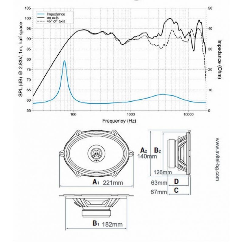 2-лентов коаксиален говорителРазмер: мидбас - 165mm/ 6.5" високочестотен - 24mm