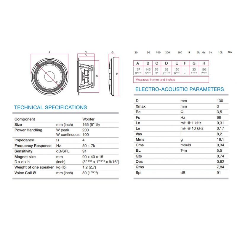 Прецизен мидбасов говорител.Размер: 165mm / 6.5" Цена за чифт - 2бр